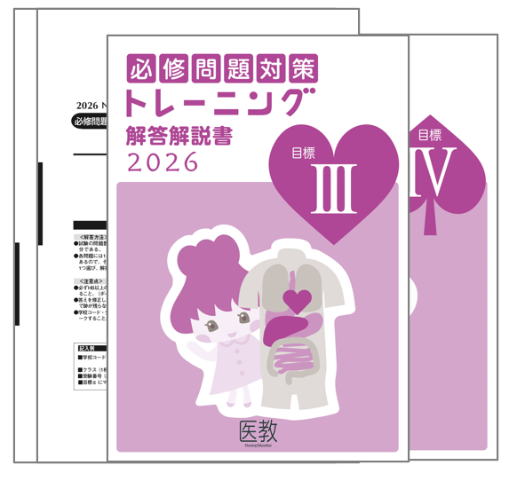 医教の必修問題対策では、国家試験での出題数が多い目標ⅢとⅣを多めの100問で構成しています。