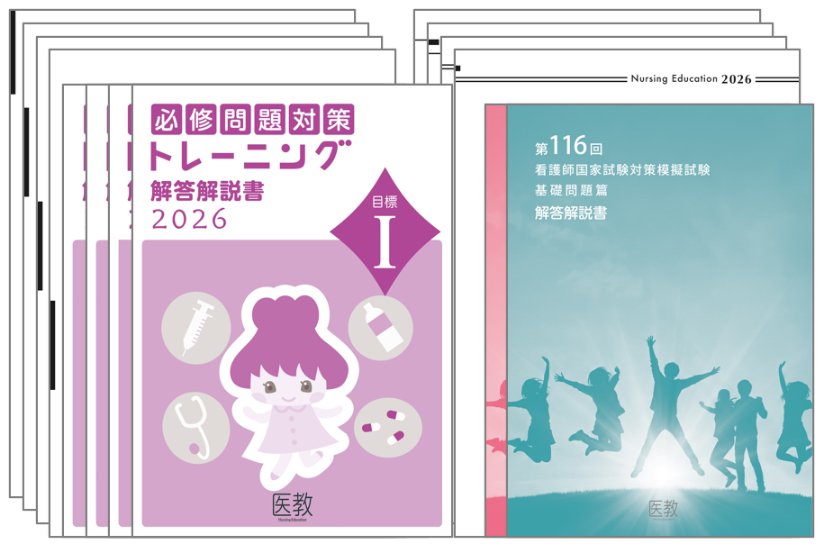 | 目標Ⅲ | ◆看護に必要な人体の構造と機能および健康障害と回復について基本的な知識を問う。 人体の構造と機能(ホメオスタシス、体温など)、症状と看護(ショック、脱水、貧血など)、主要疾患と看護(生活習慣病、感染症、精神疾患など)、薬物の作用・副作用(抗菌薬、副腎皮質ステロイド薬など)を問う問題が中心で、いわば科目の「人体の構造と機能」「疾病の成り立ちと回復の促進」の必修バージョンといえます。国試での出題数も多く、問題のバリエーションが豊富なので、基礎知識として早めの習得が必要です。 |